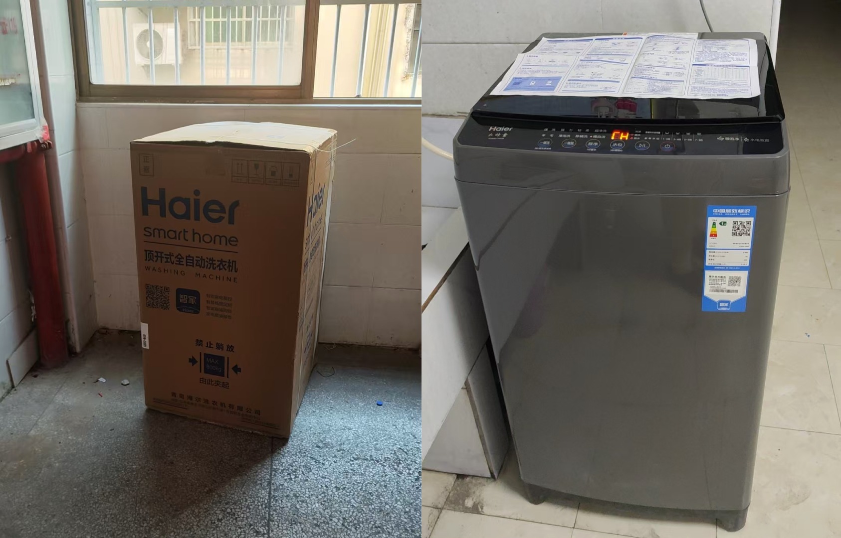这一贴心举措源于学校对实习生生活需求的细致关注。桃溪中学分管后勤的王校长在了解到实习生清洗大件衣物存在困难后,立即指示后勤部门着手解决。后勤负责人谈主任迅速响应,高效组织采购与安装工作,优先选用性能稳定的海尔品牌洗衣机,确保设备尽快投入使用。
