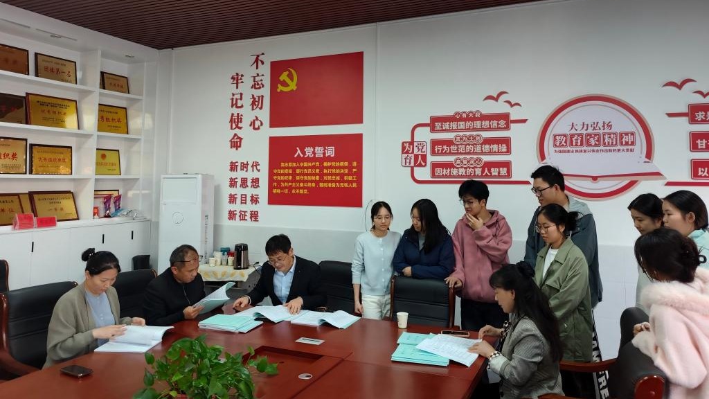 会后,检查组开展实地考察,细致查看实习生宿舍与办公环境,观摩生物专业实习生许若秋的《单细胞生物》公开课,专项查阅教育实习手册,结合实习表现给予针对性指导。