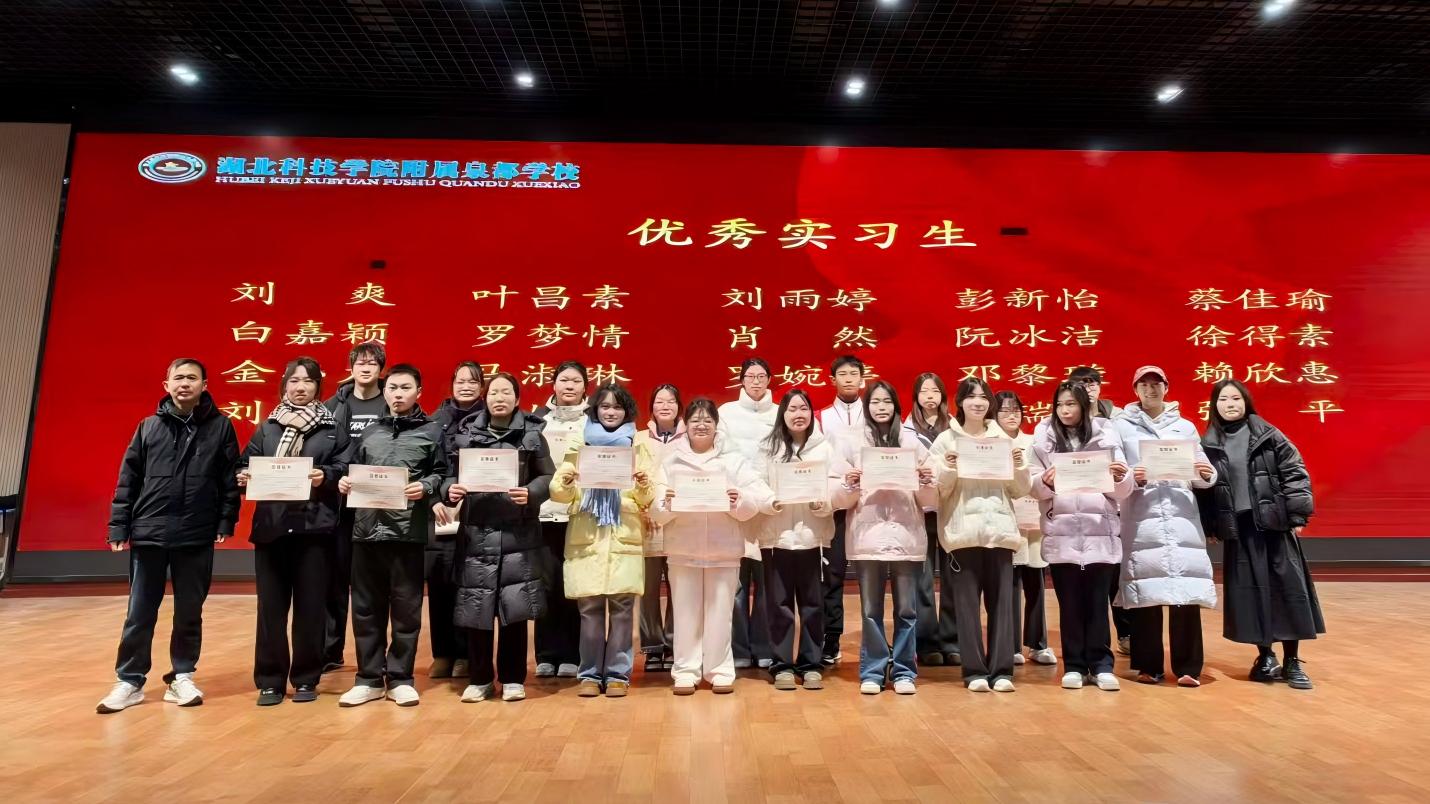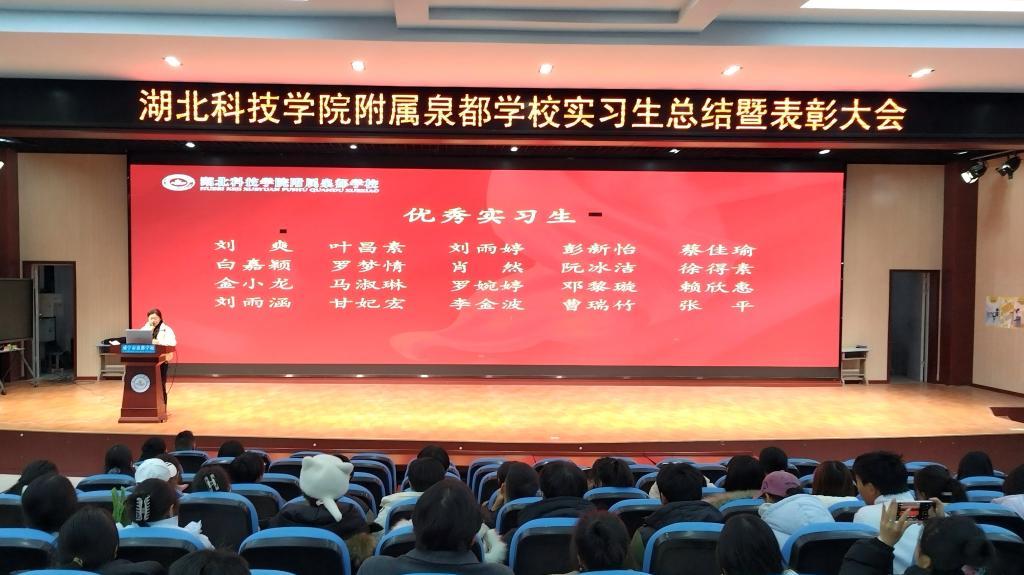 2025年12月31日,湖北科技学院附属泉都学校召开2025年实习工作总结暨优秀实习生表彰大会。泉都学校副校长李汉阳、吴晗,科教处主任廖子仲,我校实习带队教师向宏年教授,以及全体实习生出席会议。